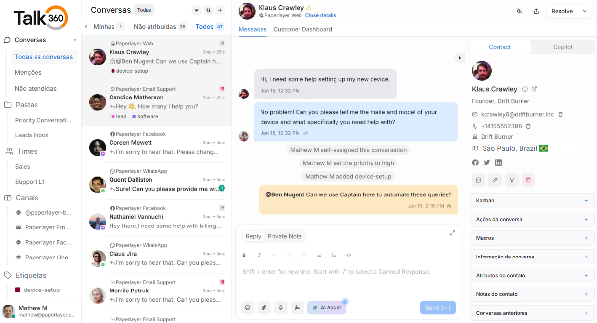 Classifique e priorize suas mensagens para um atendimento mais ágil.