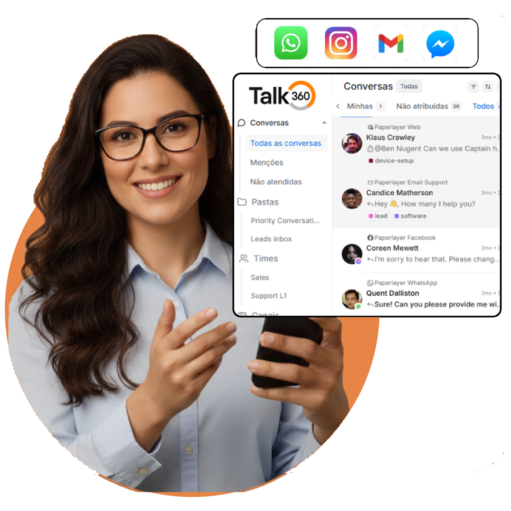 Com o Talk360, você pode centralizar todos os seus atendimentos em uma única plataforma. Gerencie interações via WhatsApp, Site e Instagram de forma simples e eficiente.